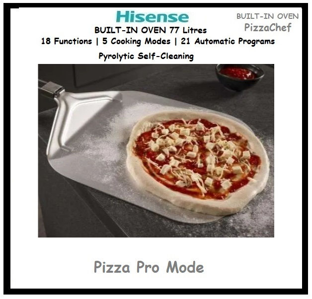 HISENSE Built-In Oven Pizza Chef 77Litres Pyrolytic Self-Cleaning 'HO66F'